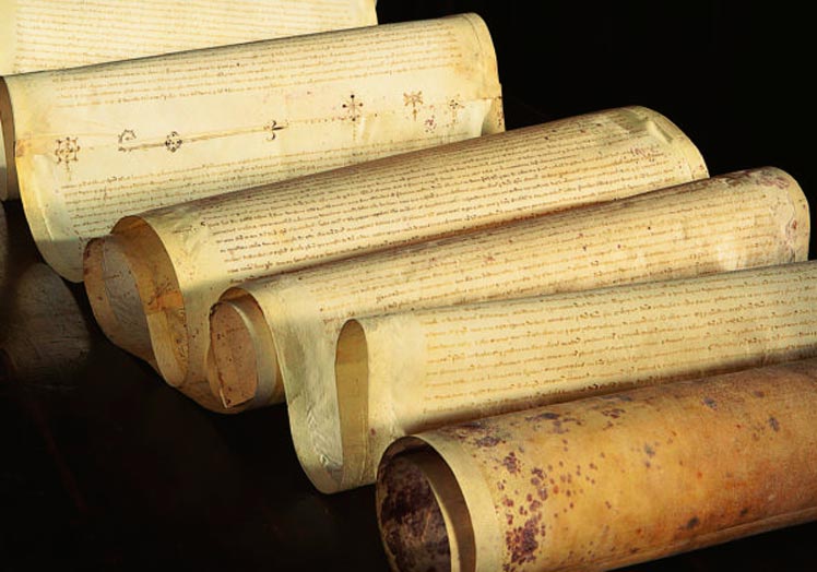 Sesenta metros de pergamino, escritos en agosto de 1308, recogen 200 testimonios de los templarios en el castillo de Chinon ante los cardenales del papa Clemente V, que meditó absolver a algunos. Sin declararse culpables, admitieron, bajo tortura, negar a Cristo y escupir sobre el crucifijo. Fueron quemados.